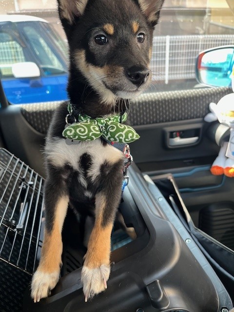 先日、狂犬病ワクチン接種も終え、お迎え当時2kgだった体重も4kgになり、とても元気に育っており、現在は外の散歩に環境に慣れさせ中です。