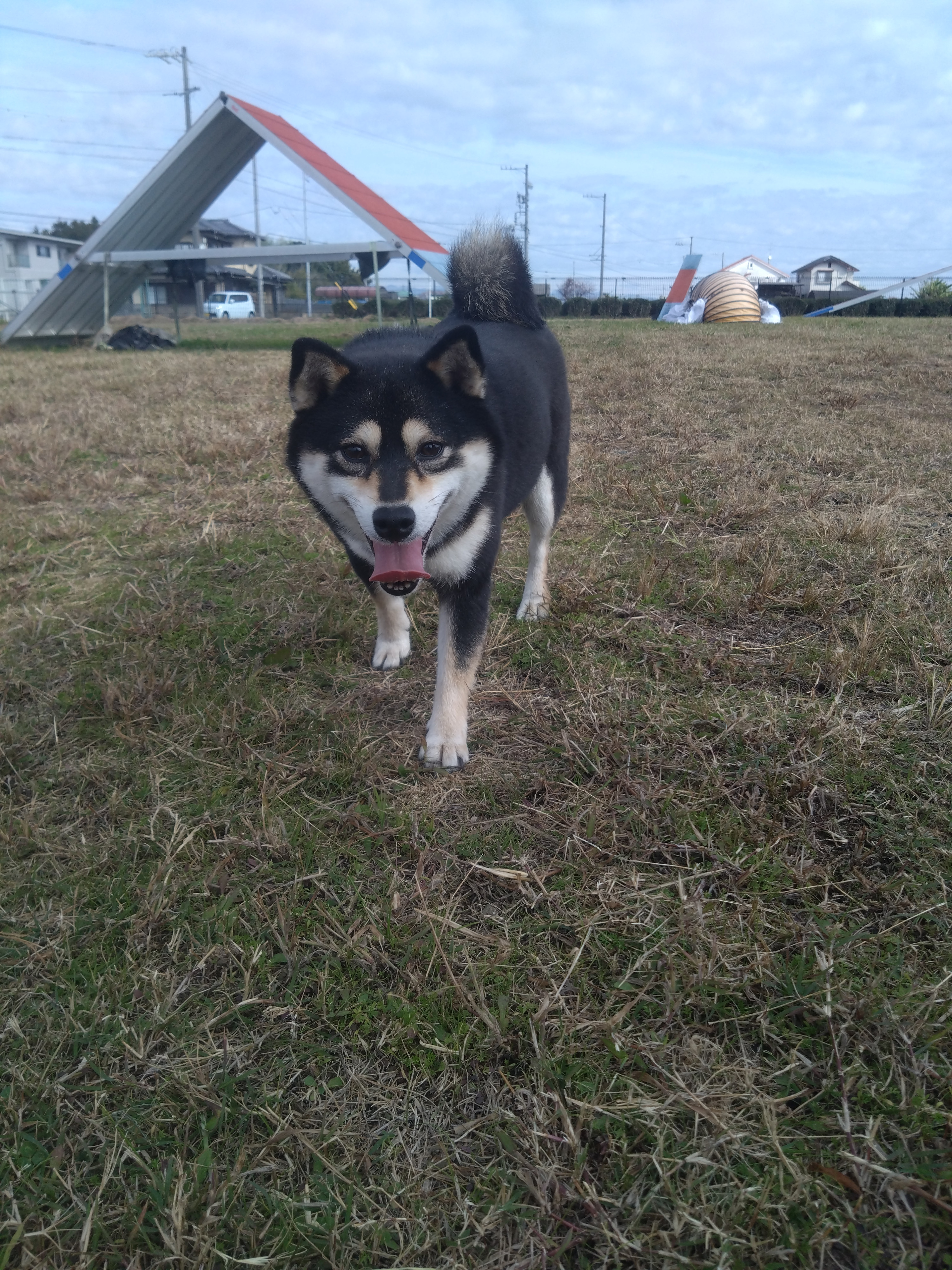 散歩が大好きで公園の落ち葉で遊んだり、野鳥を見つけると追いかけています。他の犬に会うと自分から挨拶に行く社交的な一面もあります。